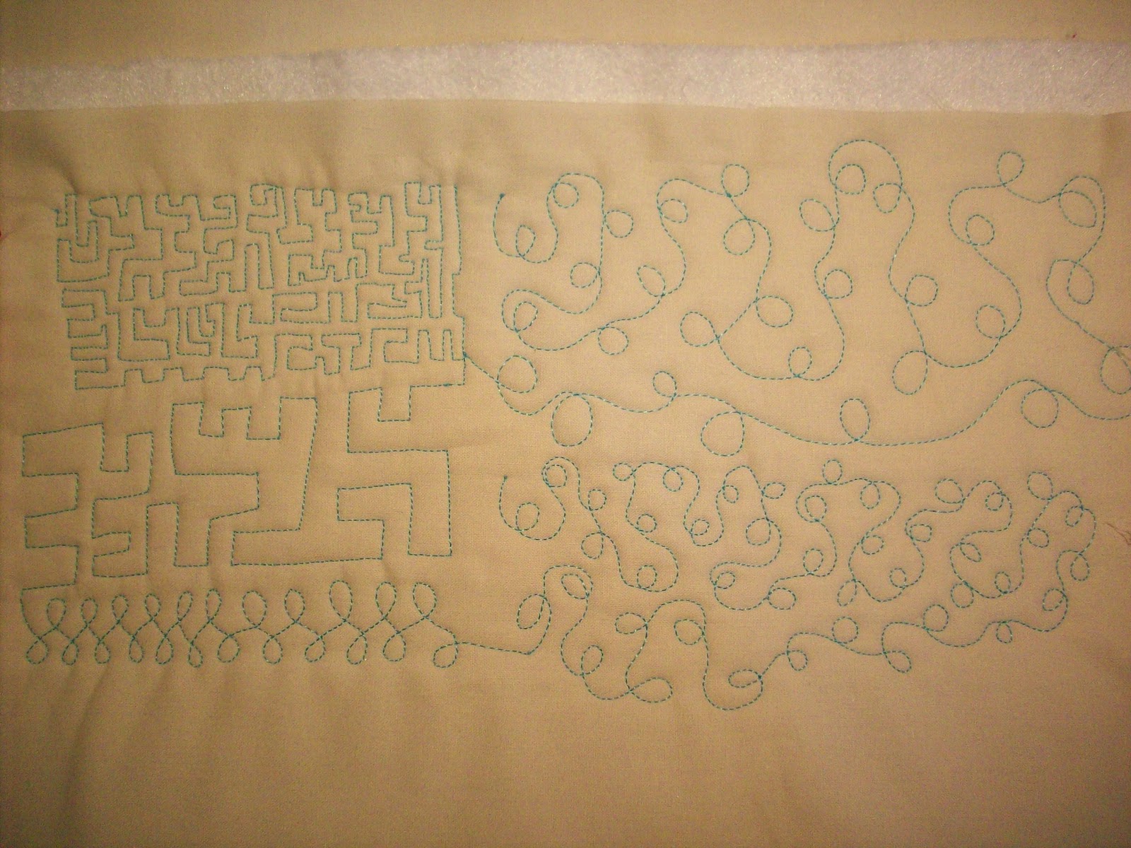 And just for fun l continued the Jagged Lines theme and added some cross-hatching. This was not one of Leah's designs and l know why - it required a LOT of travel stitching. It is effective but it took a long time and would make a quilt very stiff. I was trying to be creative but perhaps I need to keep trying!